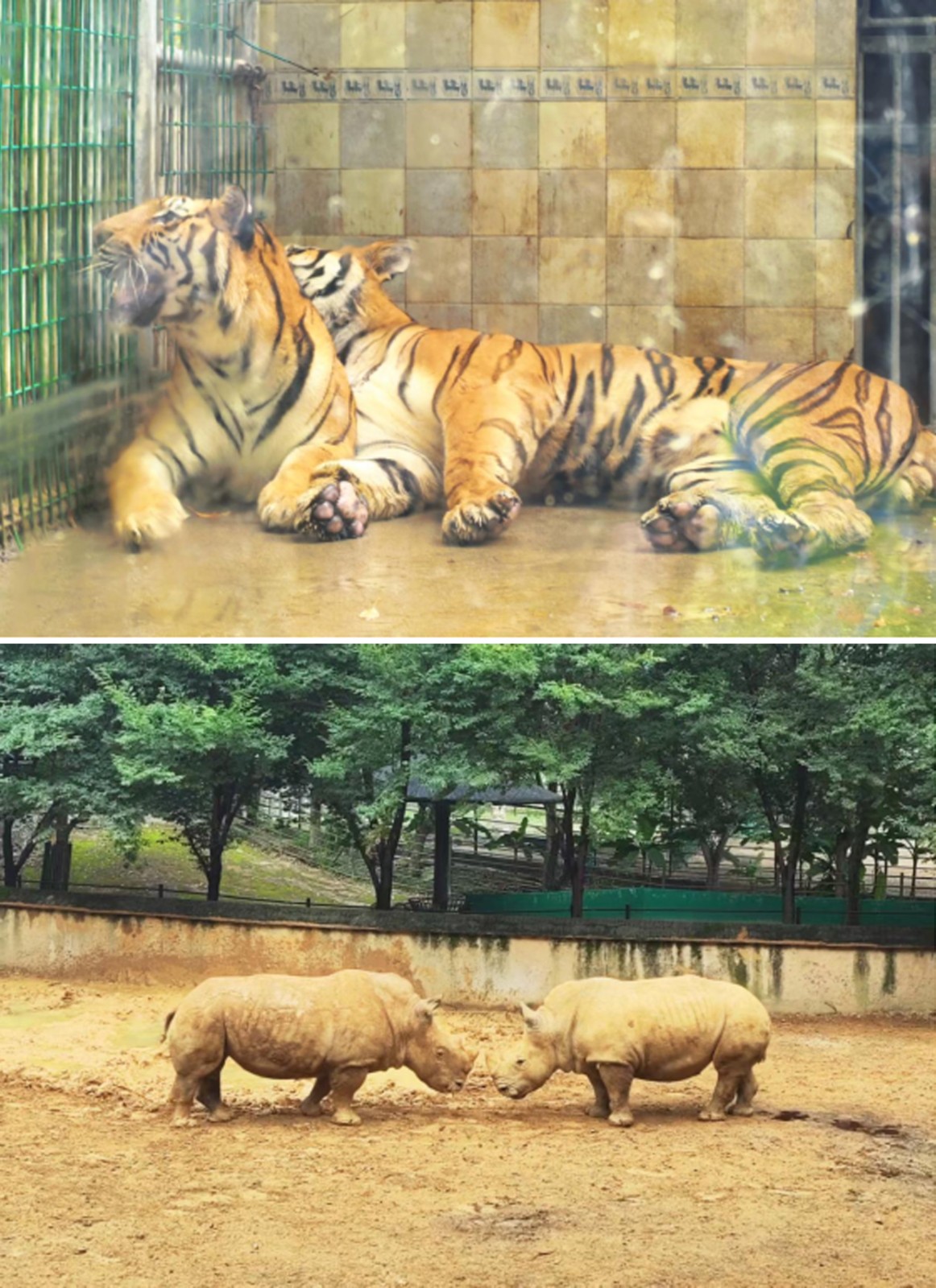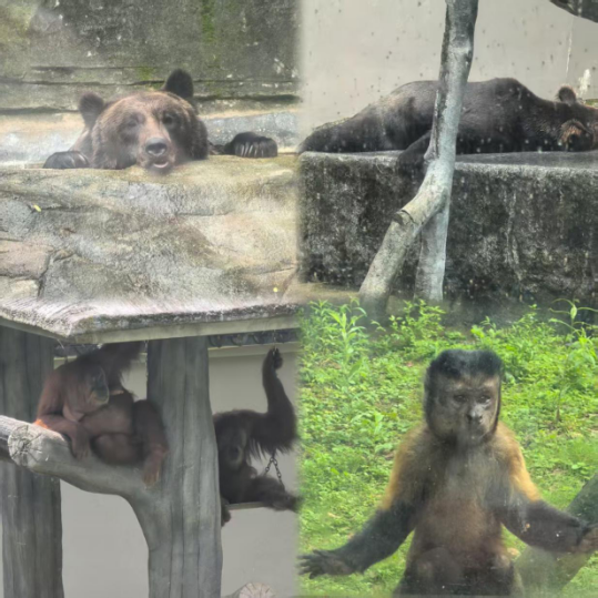在老虎園區(qū)里,威風凜凜的白虎和東北虎隔著籠子互相打量,時而發(fā)出低沉的吼聲交流,而另一邊的兩頭東北虎則親密地緊挨在一起打盹,斑駁的樹影灑在它們金黃的皮毛上。不遠處的犀牛區(qū),兩只體型龐大的白犀牛正在上演領(lǐng)地之爭,它們用粗壯的角互相頂撞,揚起陣陣塵土,發(fā)出沉重的鼻息聲;非洲大羚羊區(qū)最是熱鬧,高大的羚羊們溫順地低下頭,伸著脖子吃著小朋友親手投喂的食物,長長的睫毛在陽光下忽閃忽閃。樹冠間,靈巧的長臂猿扒著樹干蕩著秋千,偶爾還會停下來好奇地觀察下方拍照的游客。園區(qū)主干道上,飼養(yǎng)員牽著一匹可愛的袖珍小馬漫步,珍珠馬的脖子上系著的鈴鐺隨著步伐發(fā)出清脆的聲響。整個園區(qū)洋溢著人與動物和諧相處的氛圍。