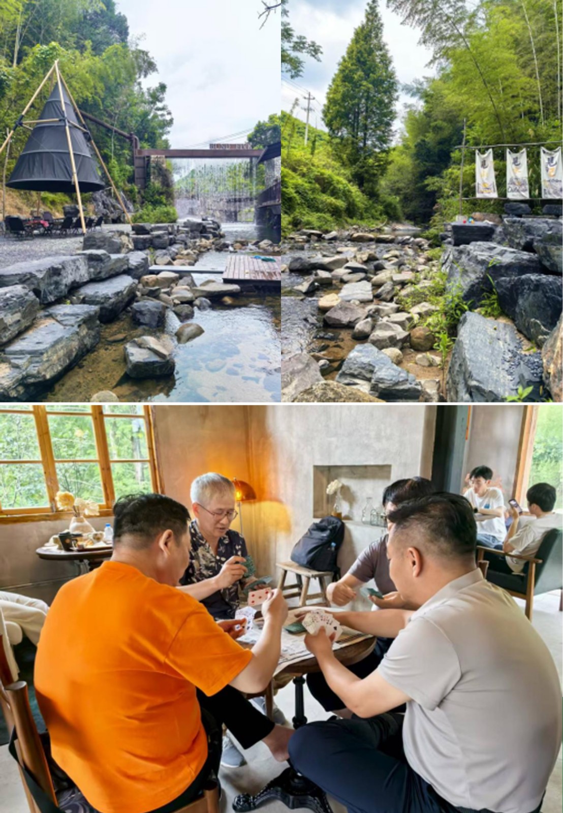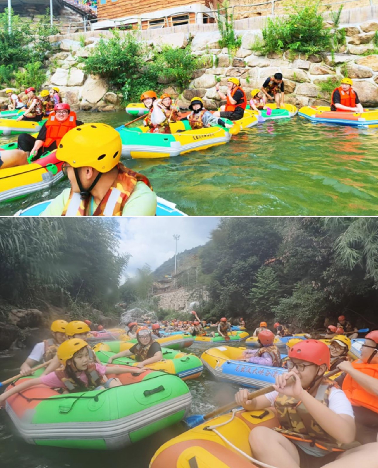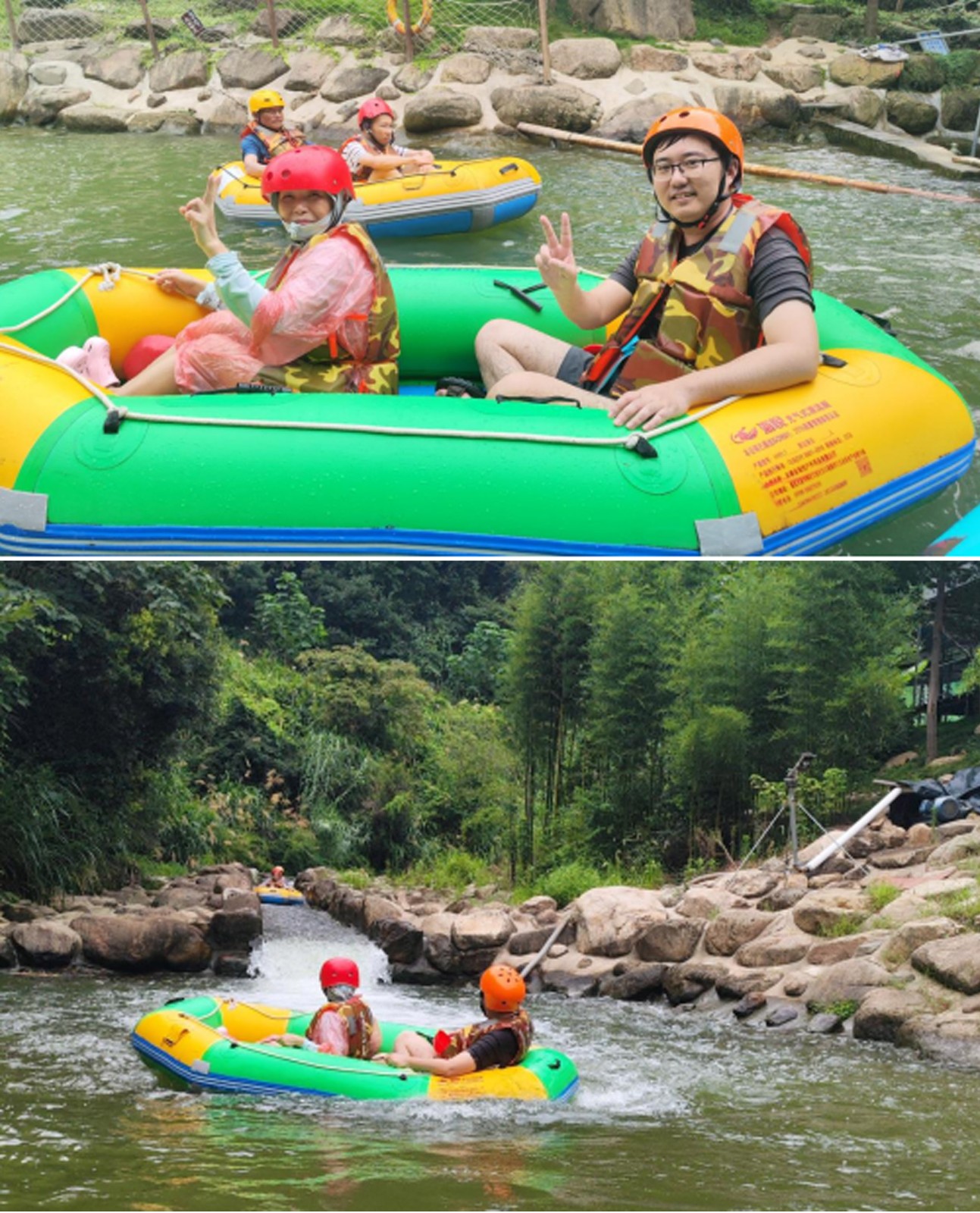 小伙伴們換上裝備,踏進皮筏,兩兩一隊,水瓢、水槍齊上陣,小伙伴們瞬間化身“漂流勇士”,寧靜的河道霎時間成為潑水狂歡的戰(zhàn)場,歡聲笑語與水花四濺交織在一起。清涼的溪水驅(qū)散了夏日的燥熱,激烈的“對戰(zhàn)”更點燃了團隊的活力與激情,一場?酣暢淋漓的夏日消暑大戰(zhàn)?讓大家徹底放飛自我,拉近了彼此距離,也為第一天的行程注入了無限活力。